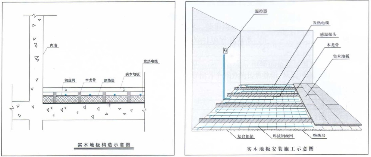如采發(fā)熱電纜電地暖用地溫溫控器,應(yīng)在安裝本地板的同時(shí)安裝地溫探頭。地溫探頭應(yīng)安裝固定在木地板下表面,用膠帶、卡釘固定。如圖所示: