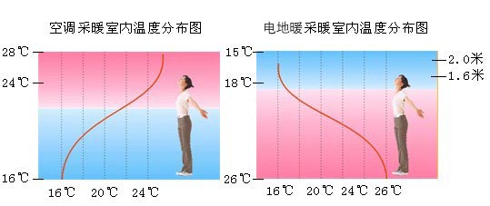 2從溫度梯度看:電采暖供暖是通過低溫輻射,加熱室內密實物體,然后令室內空氣均勻升溫,其溫度梯度自下而上遞減,讓人感受足暖頭涼;而傳統散熱暖氣片和空調的溫度梯度則剛好相反,是自上而下遞減的,久之會讓人感受頭暈不適。