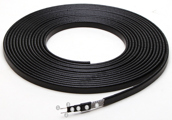 伴熱電纜由納米導電碳粒和兩根平行母線外加絕緣層構成,由于這種平行結構,所有“鳩茲”牌電伴熱線均可以在現場被切成任何長度,采用二通或三通接線盒連接。