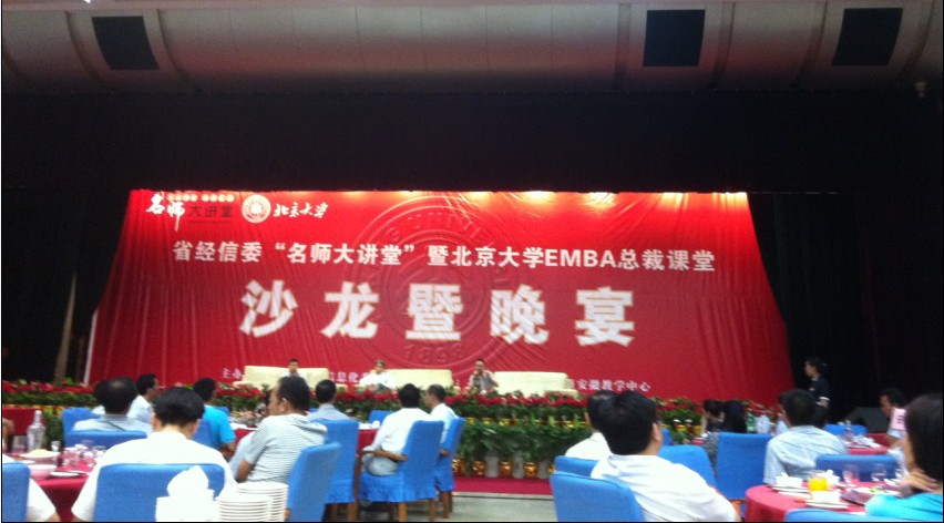 由省經(jīng)信委、北京大學(xué)邀請名師大講堂知名講師,協(xié)作舉辦的EMBA總裁課程,眾多企業(yè)的管理層人員齊聚一堂交流企業(yè)管理經(jīng)驗。此次授課為期2天,并與今日落下帷幕。晚宴上,省信委領(lǐng)導(dǎo)出席主持,話語中透露著對各個行業(yè)管理人員的期許,正是因為有你們的正確的領(lǐng)導(dǎo),才能延續(xù)企業(yè)的活力,才能振興國民經(jīng)濟。晚宴上處處洋溢著積極上進的熱情氛圍。